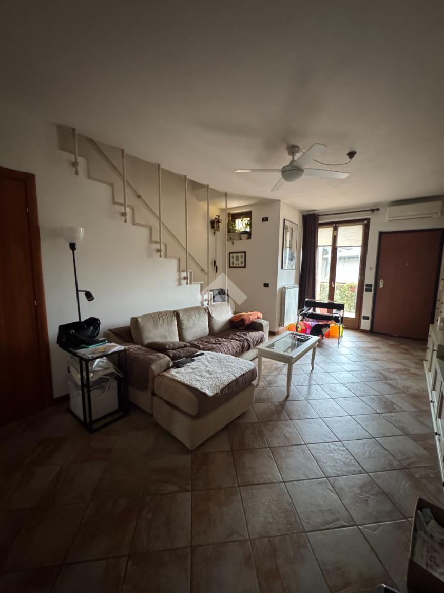 Nel tranquillo contesto di Salionze, frazione di Valeggio sul Mincio, è disponibile un immobile in vendita che si sviluppa su più livelli. La proprietà offre spazi ben distribuiti e funzionali. Al piano terra, si trova un ampio soggiorno con accesso diretto a uno dei due terrazzi, ideale per momenti di relax all'aperto. La cucina abitabile è separata e ben organizzata. Al piano superiore, due camere da letto luminose, garantiscono comfort e privacy. Sono presenti due bagni, uno per piano, per una maggiore comodità. Completano la proprietà una cantina e un box auto. L'immobile, costruito nel 2004, è dotato di aria condizionata, assicurando un ambiente confortevole in ogni stagione. Una soluzione abitativa che coniuga praticità e tranquillità, immersa nel verde della zona.